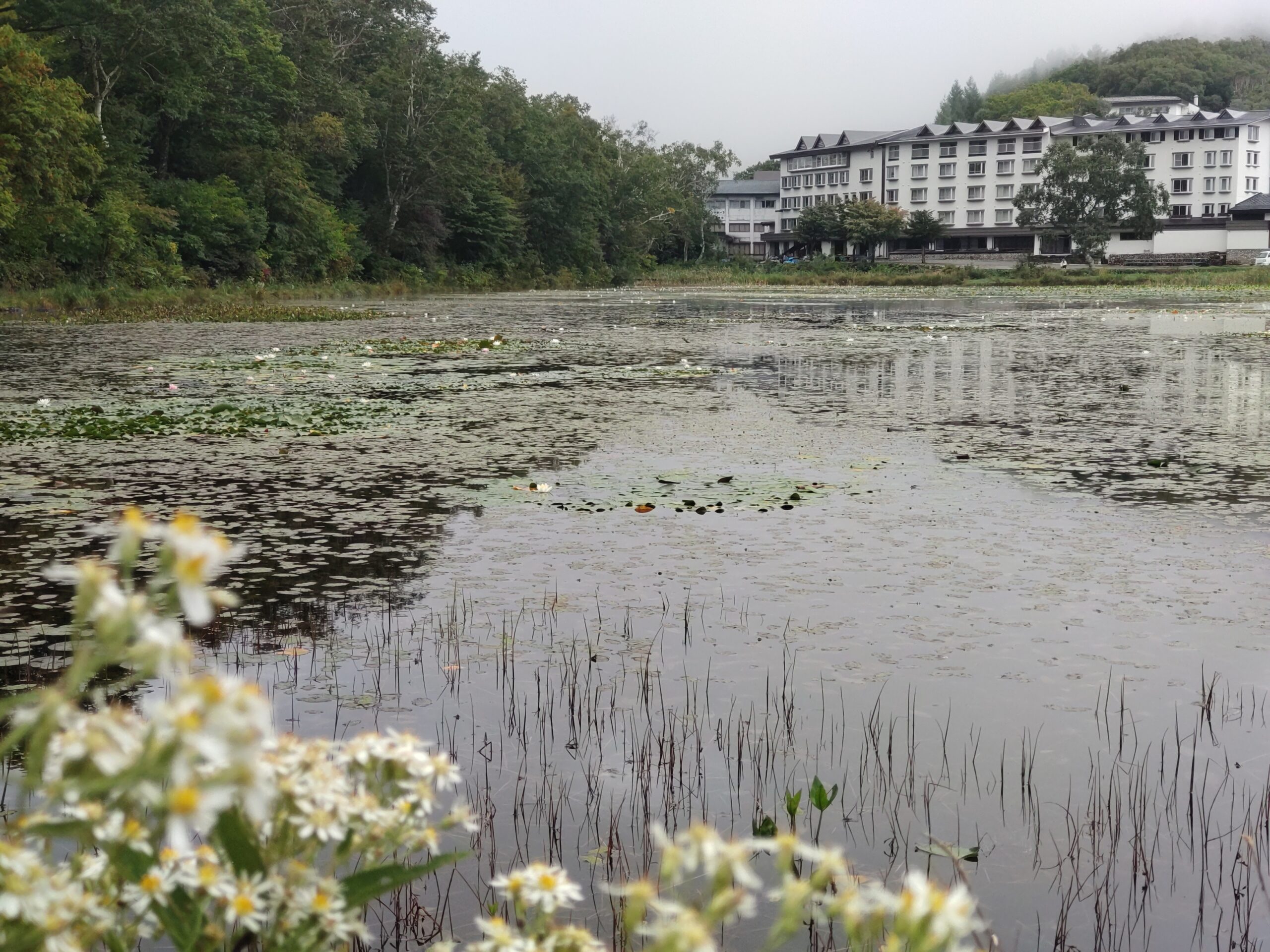 志賀高原山の駅までゴンドラで戻ってきました。そしてその駅の隣がもう蓮池になっています。