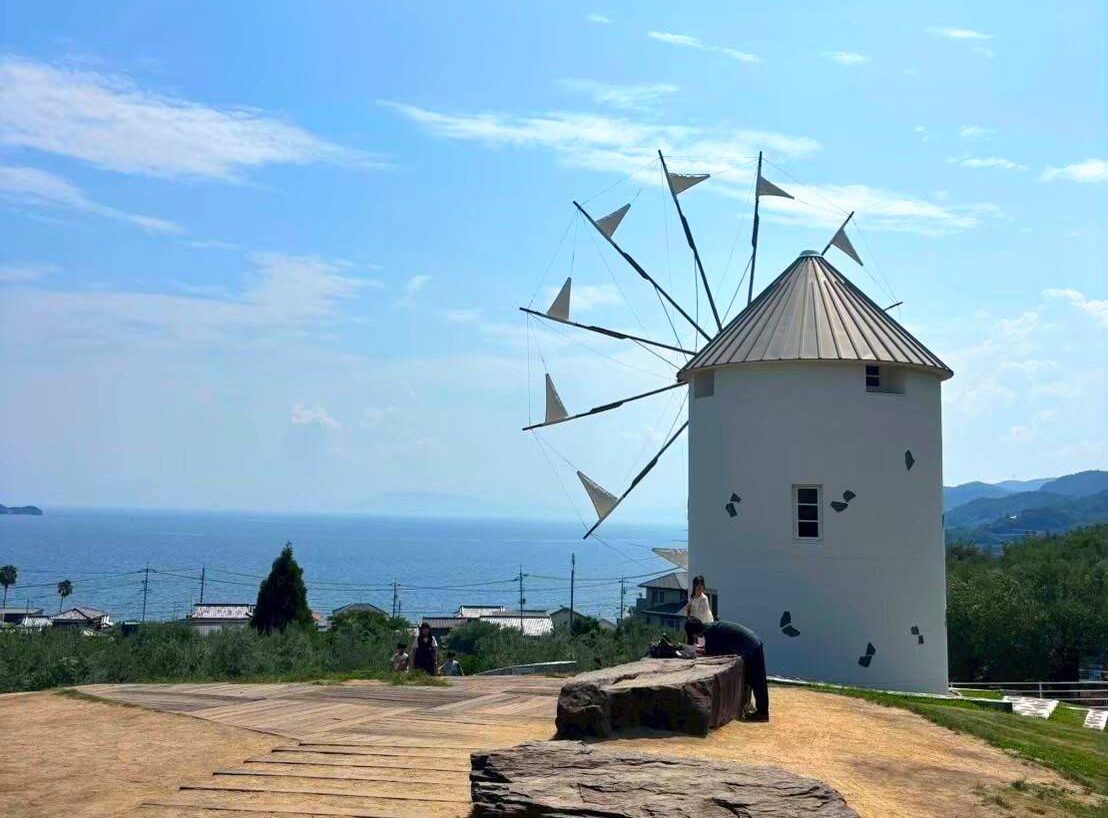 実写映画「魔女の宅急便」のセットの一部がここにあることから、ほうきを無料で貸し出してくれるサービスもあります。ほうきにまたがってシンボルのギリシャ風車前で記念撮影するのはマストですね。